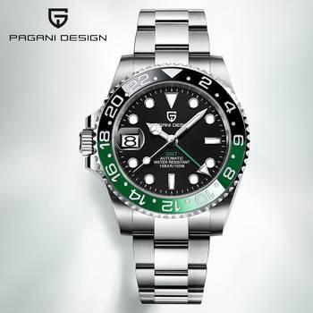 PAGANI DESIGN Luxury GMT Men Mechanical Wristwatch Sapphire Glass Stainless Steel 100M Waterproof Automatic Watches