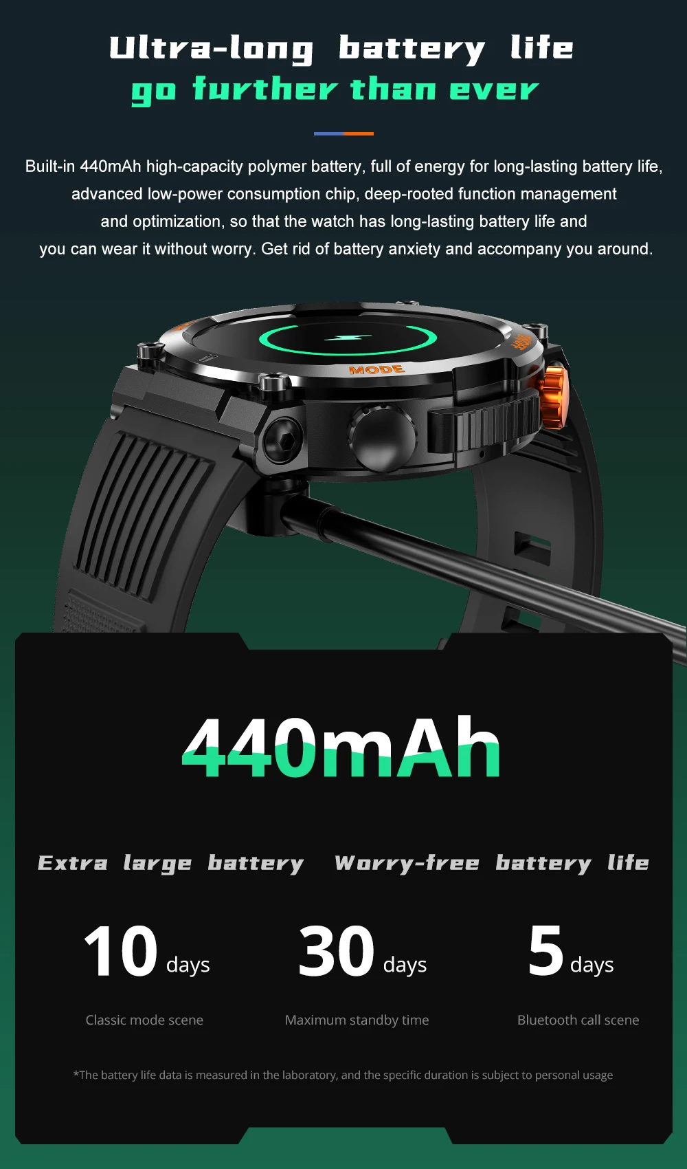 Battery Saver Modes: Up to 30 Days