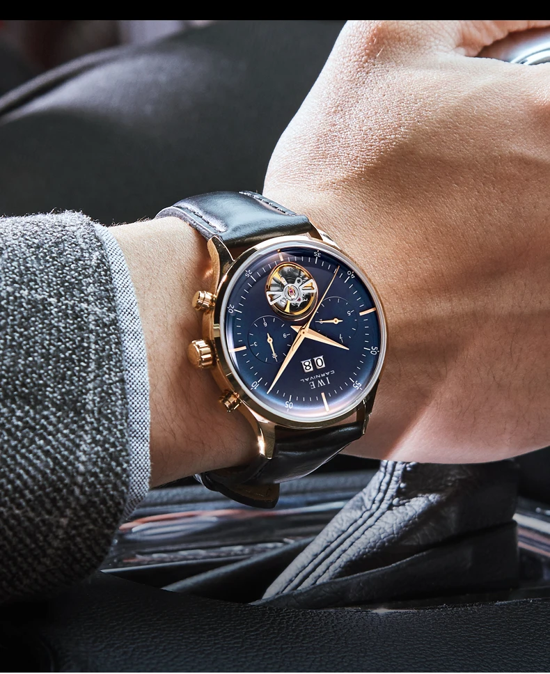 Not a tourbillion watch, but looks great, is keeping very good time. I am very happy with purchase. The delivery time was quick. All good….