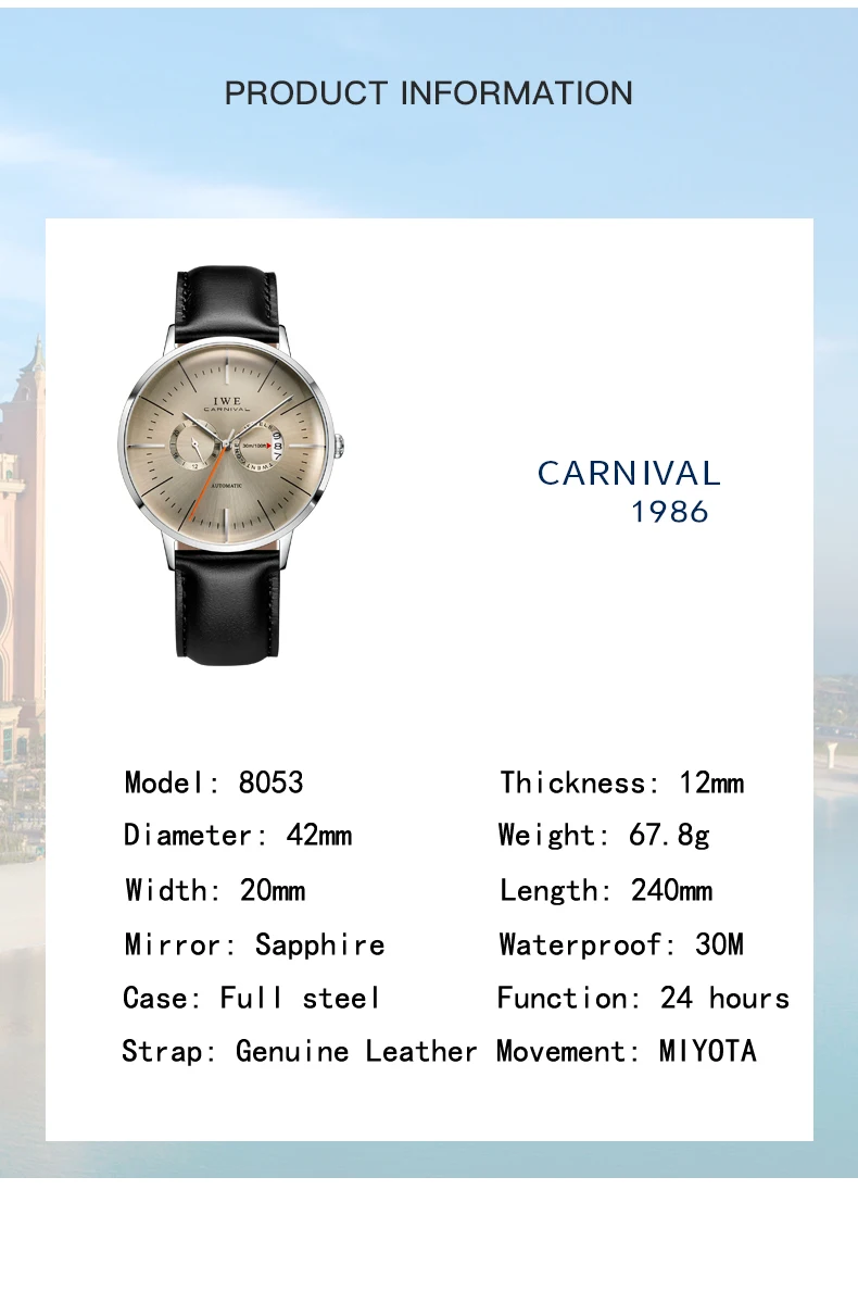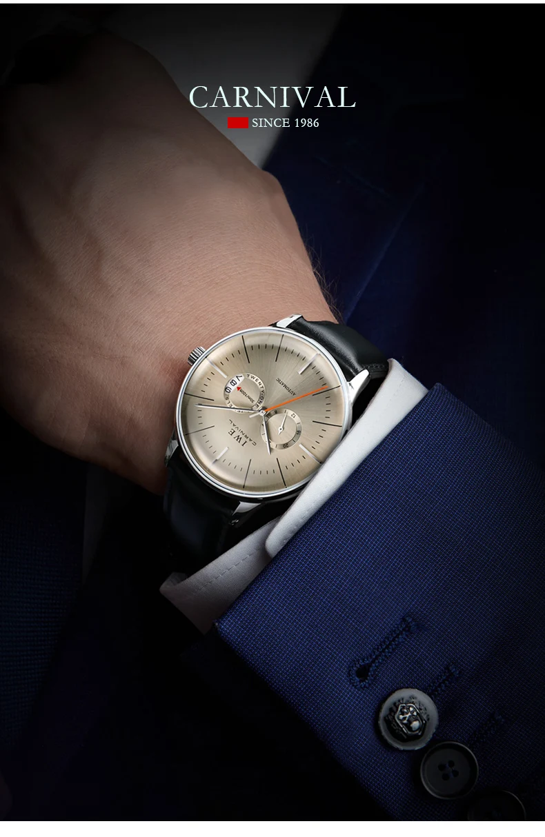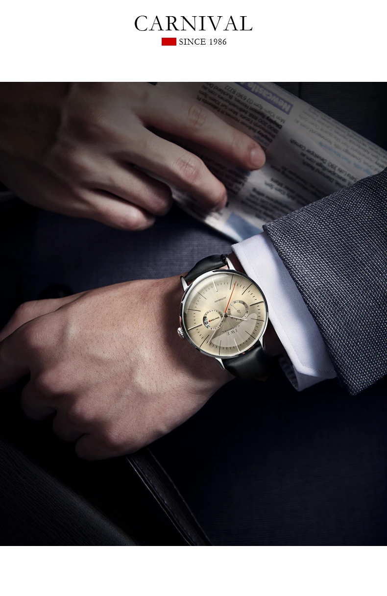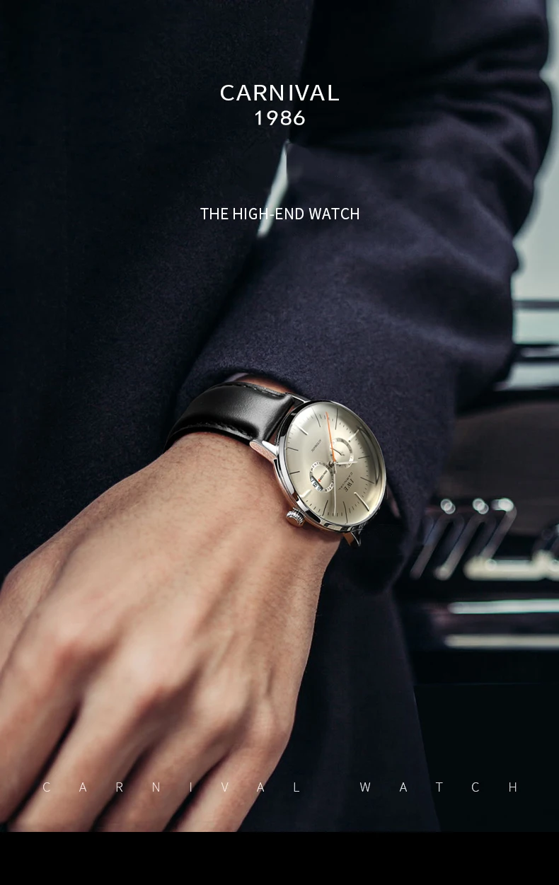 CARNIVAL Sapphire Glass MIYOTA Movement GMT Mechanical Watches 30m Waterproof Classic Fashion Luxury Automatic Watch