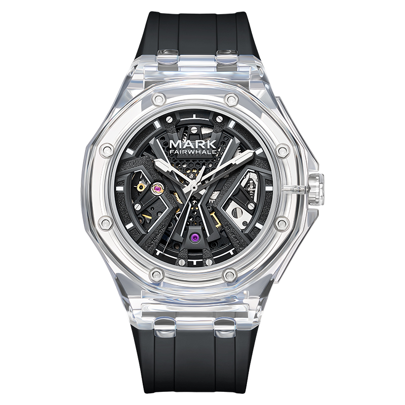Mark Fairwhale Men Automatic Watch 42mm Fashion Mechanical Wristwatch Waterproof Luminous Transparent Acrylic Case Skeleton Dial