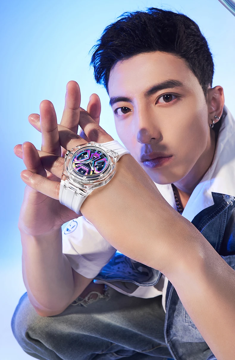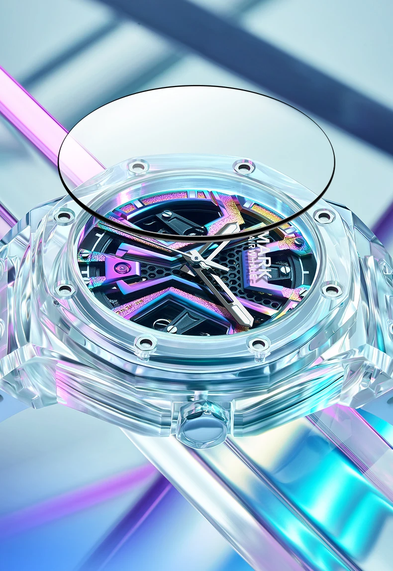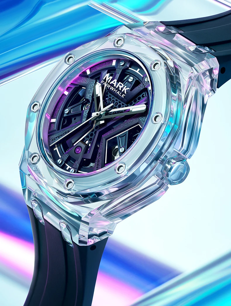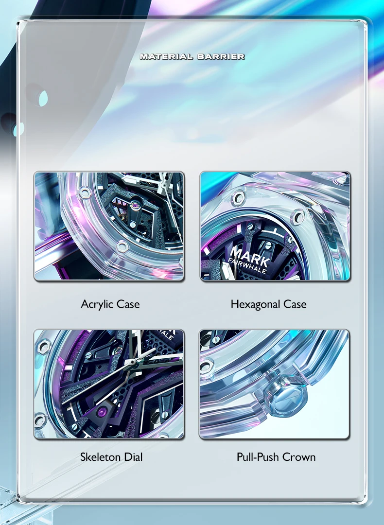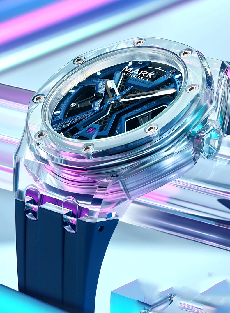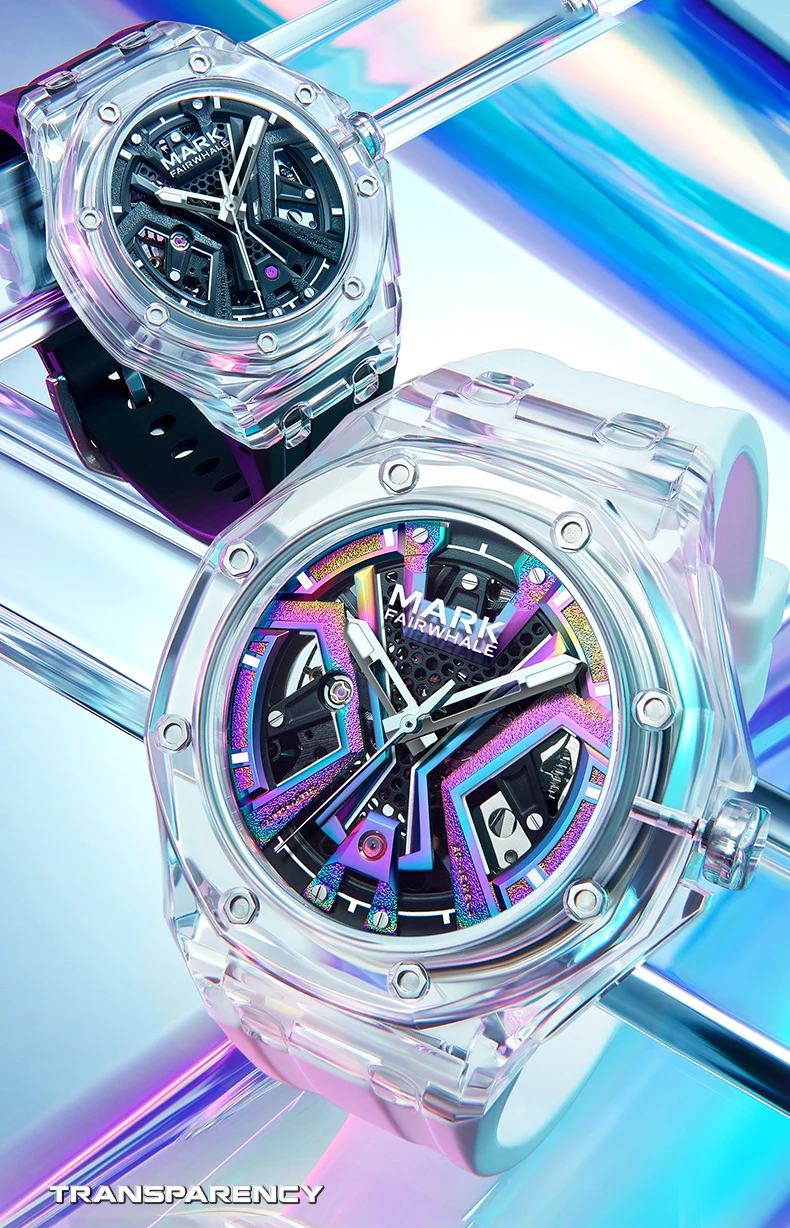 Mark Fairwhale Men Automatic Watch 42mm Fashion Mechanical Wristwatch Waterproof Luminous Transparent Acrylic Case Skeleton Dial