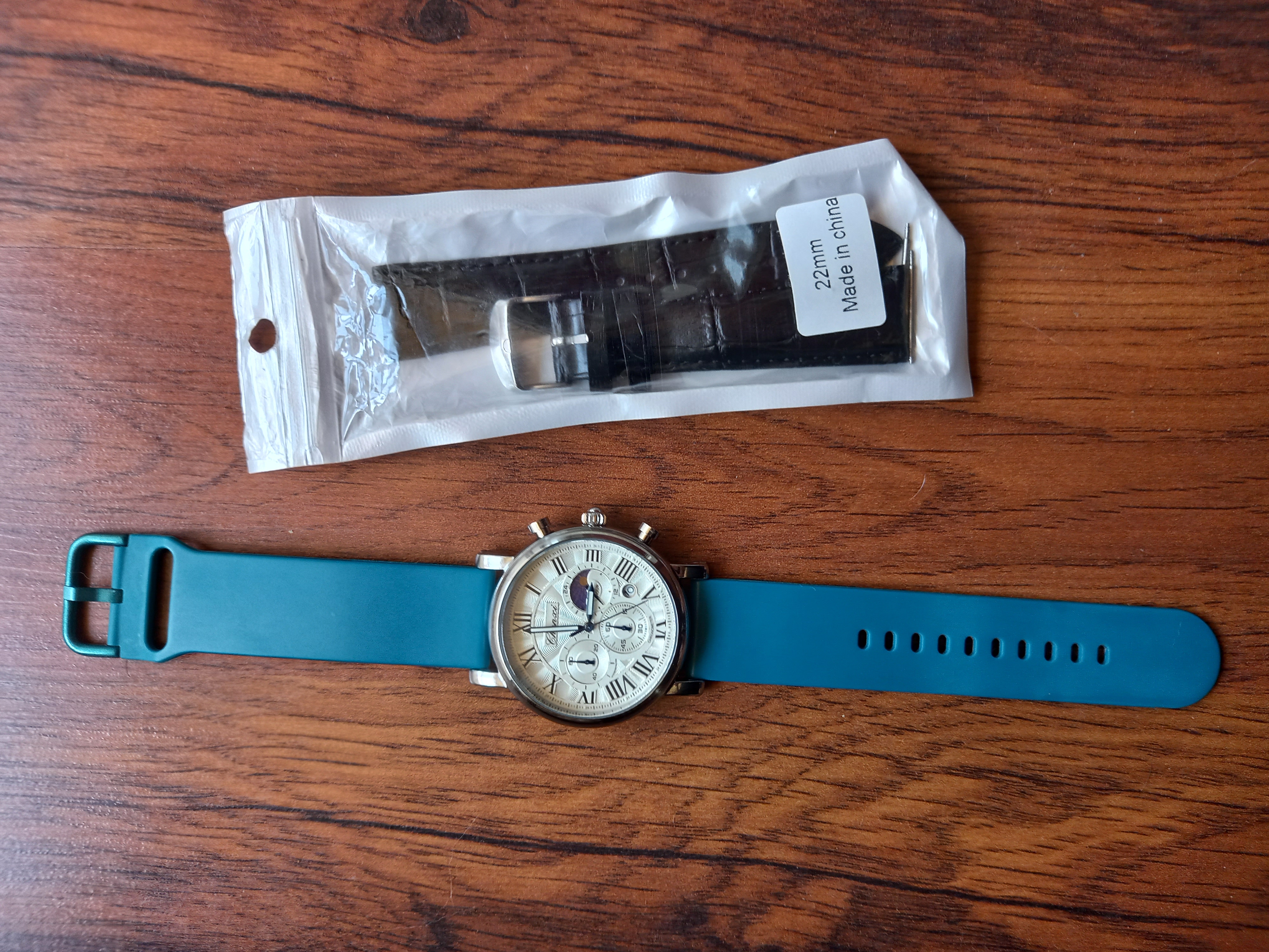 When I bought it, the seller immediately shipping it in less than an hour. I used a 22mm liquid silicon cord and it worked very well. The clock is beautiful. ----------------------------------------------------------------------------------------------------------------------------------------------------- When I bought it, the seller gave it to the cargo immediately without even 1 hour. It was very good that I put on a 22mm liquid silicone cord. The watch is very nice.