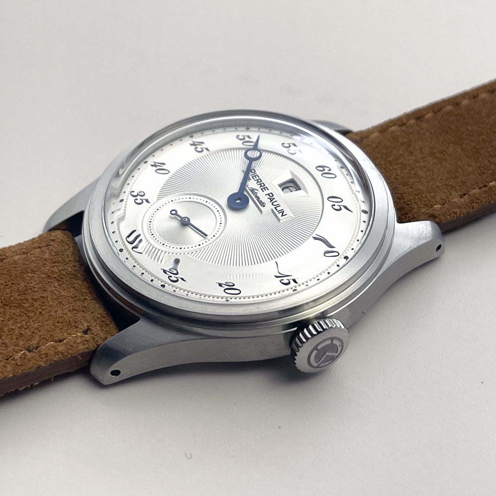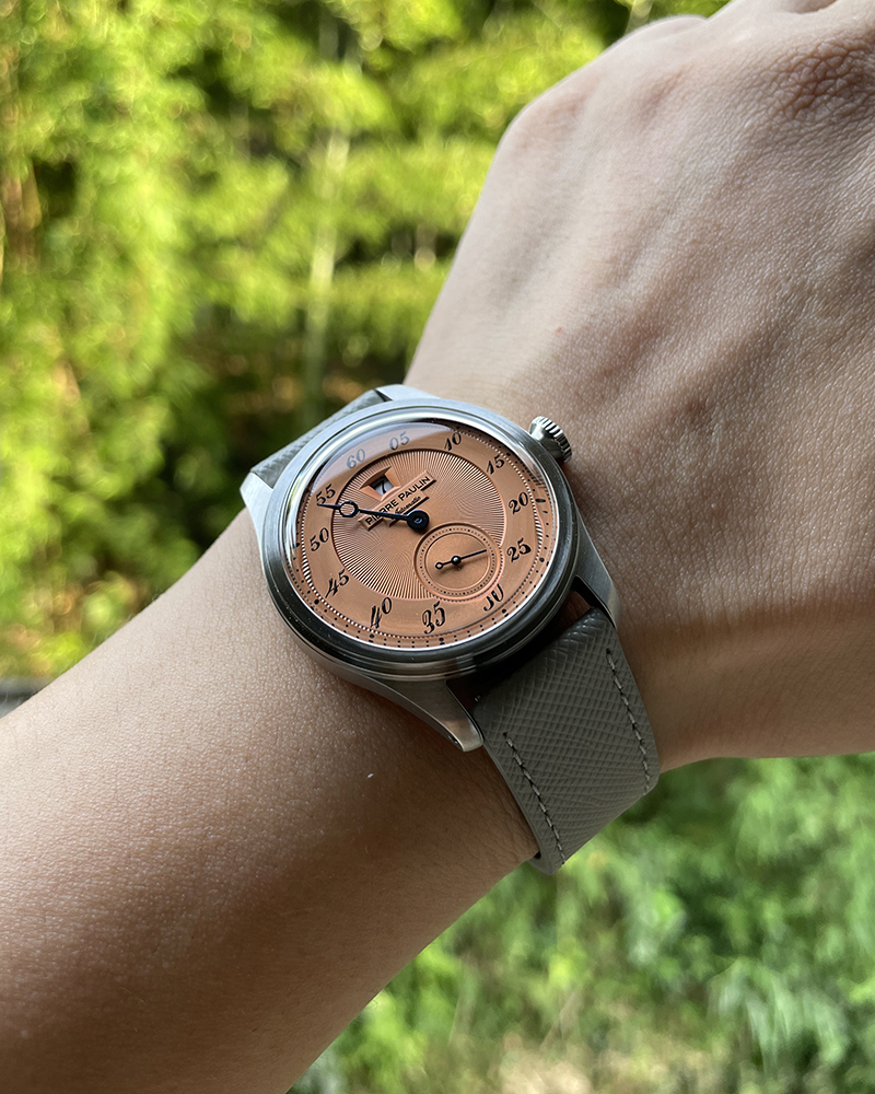 I’ve got a couple of Pierre Paulin dress watches now, and I find the 38mm cases very comfortable to wear. This ‘jumping hour’ salmon dial piece is no different ; and that rich deep salmon colour together with the textured centre section is one of the best looking I’ve worn to date - really really nice. Add the unusual hour complication with the blue hands and it’s a different option from the norm. Although the high box domed crystal is only mineral, it has such nice distortion on the outer section and edges it’s forgivable here, especially given the price. Putting a better quality strap on this watch lifts it again to another level. As affordable dress / vintage style watches go, this is the nicest since I bought my Second Hour Mandala salmon dial s couple of years ago - and that is 5 times the price. Well worth checking out…