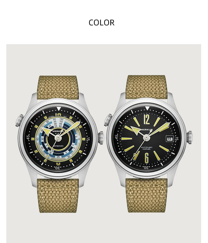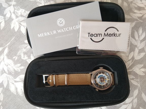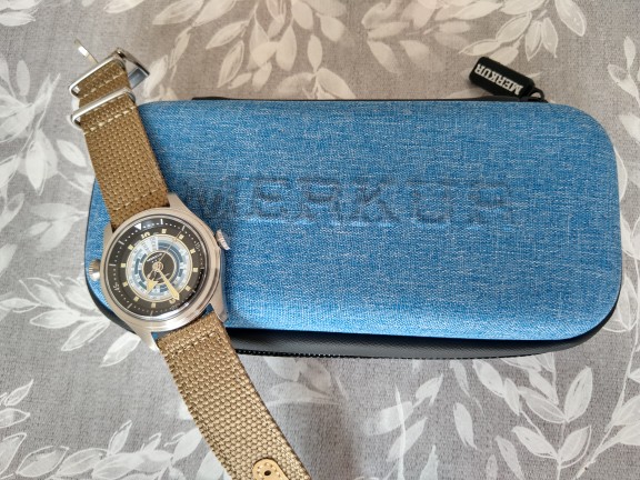 This is a better decompression timer than Merkur's previous attempt (the one with the colourful dial). The lume on the hands is better and the water resistance has doubled to 100m. If Merkur could make a 200m version I think they'd sell lots. However, to achieve the stated water resistance the back of the case needs to be screwed down tightly. This one wasn't and I was able to unscrew it with almost no pressure from a rubber 8 ball. I'm glad I checked because I could have flooded it if I had gone in water with it. I tightened it with a case tool and would advise all buyers to check and do the same if necessary. The movement is M01D movement is quite accurate. As far as I understand it is the Fenzhi version of the standard Chinese 'Tongji' movement, as manufactured by Merkur. It's the best looking Tongji I have seen with blue screws like a Seagull. The strap is surprisingly soft but I think it doesn't suit the watch so I put it on a black 'waffle' dive strap. Overall, I like the watch.