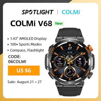 [2023] COLMI V68 1.43” AMOLED Display Smartwatch 100 Sports Modes Compass Flashlight Men Military Grade Toughness Smart Watch