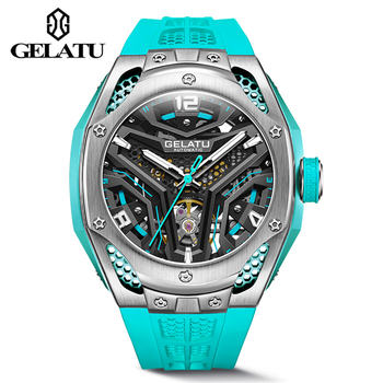 GELATU Automatic Mechanical Watch for Men 53mm Big Dial Wristwatch Skeleton Tourbillon Design Man Waterproof Watch Reloj Hombre