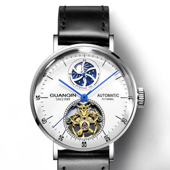 GUANQIN New Mechanical Tourbillon Luxury Men’s watches Steel shell Moon Phase Automatic watch for men Waterproof Leather Watch