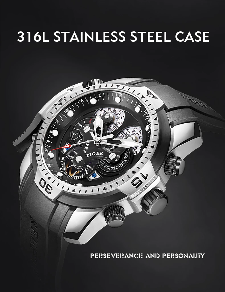 Features:Fashion Skeleton Dial,Month,Week,Date