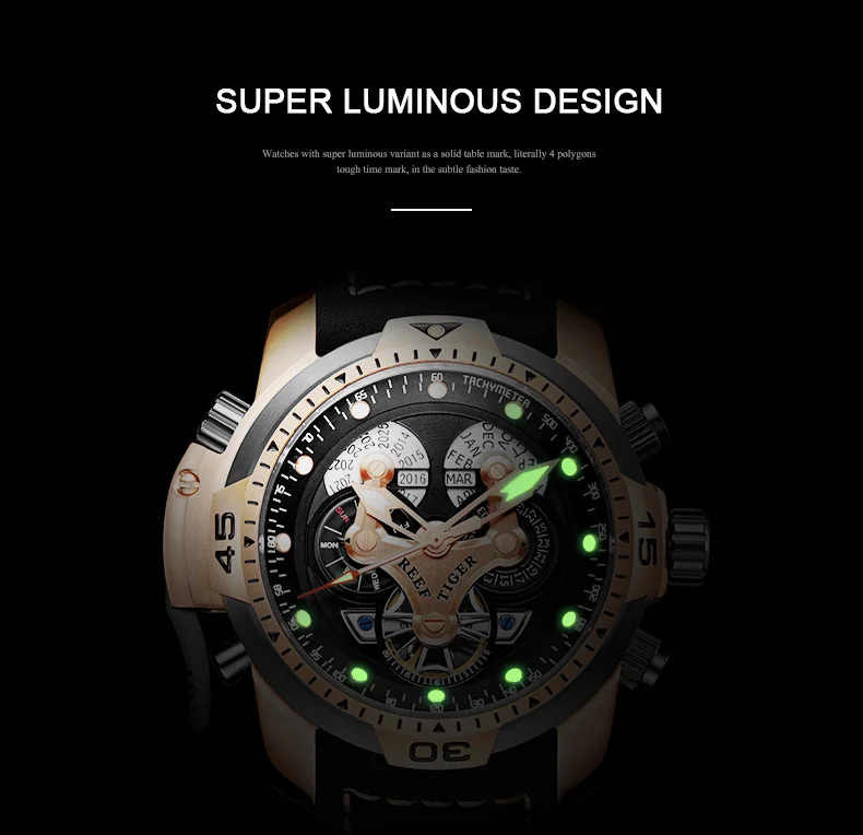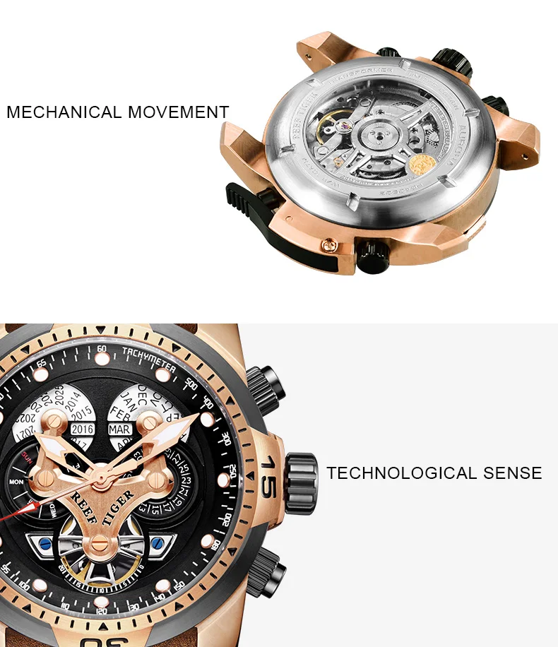 Reef Tiger/RT Designer Sport Mens Watch with Perpetual Calendar Date Day Complicated Blue Dial Mechanical Bracelet Watch RGA3503