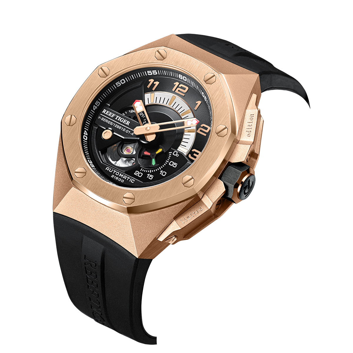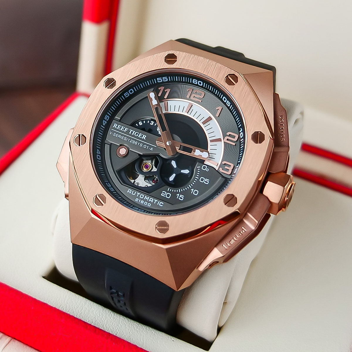 Reef Tiger/RT Top Brand Luxury Rose Gold Sport Automatic Mechanical Men Watch Waterproof Relogio Masculino RGA92S7