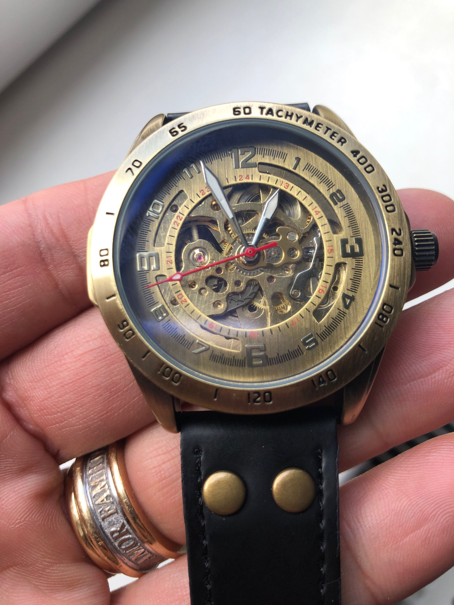 The clock is cool, but there is a lack of luminaphore, nothing is visible in the dark. The strap is thick and does not pull on real leather. The watch itself has a good self-winding.