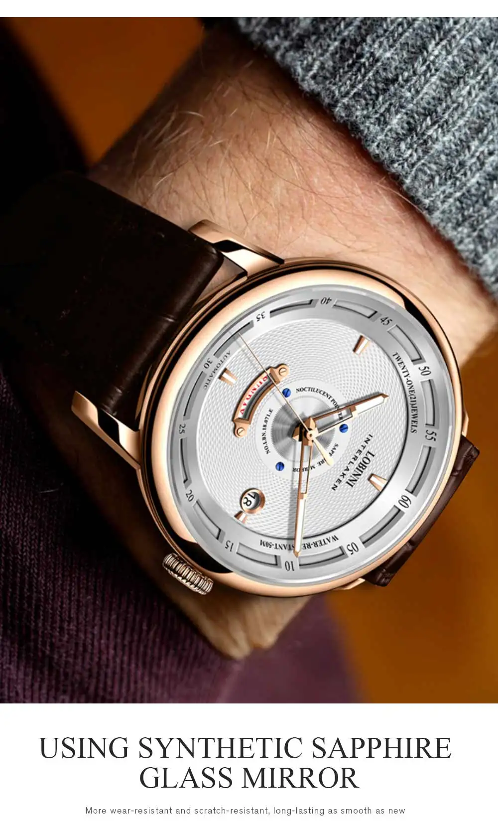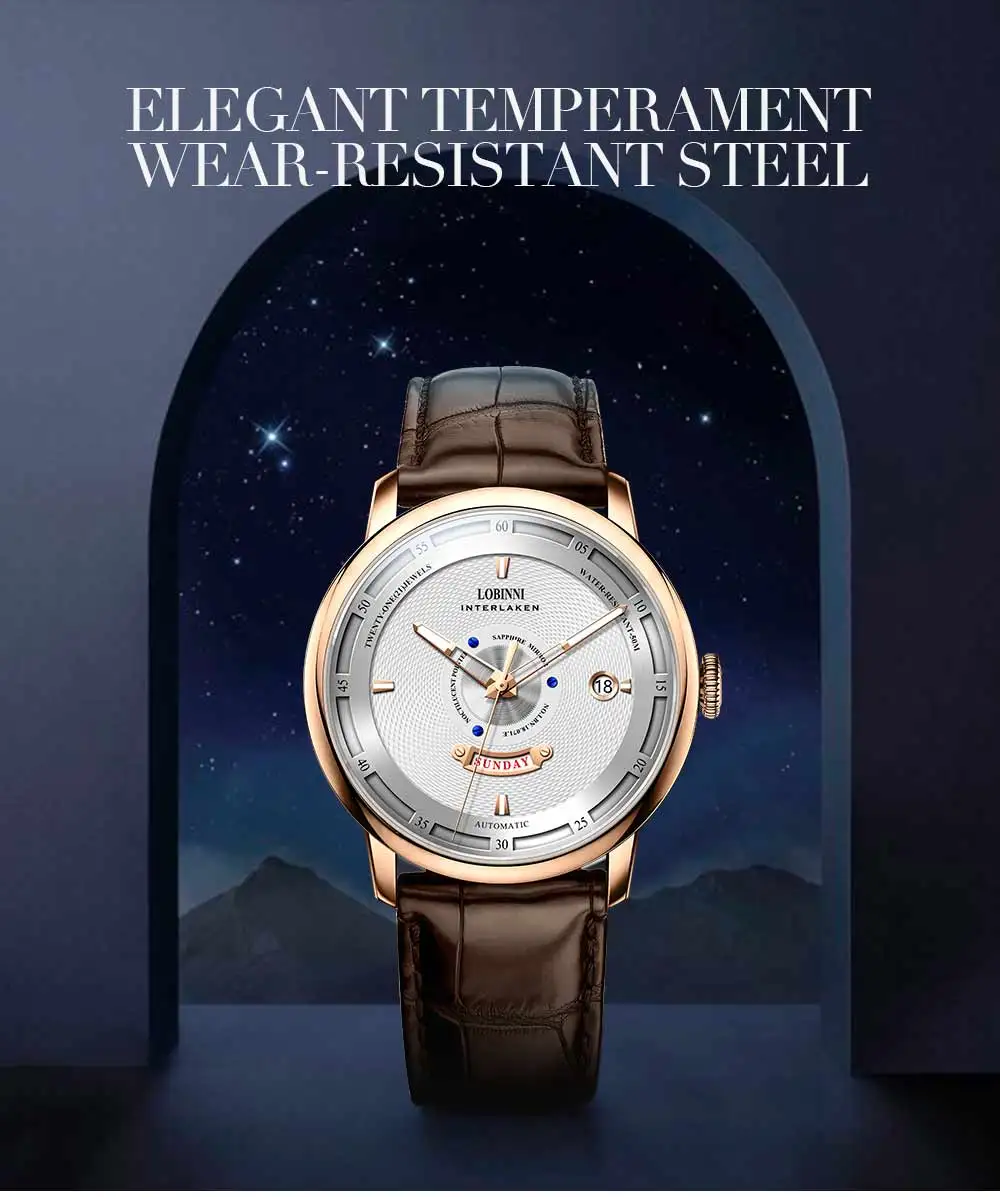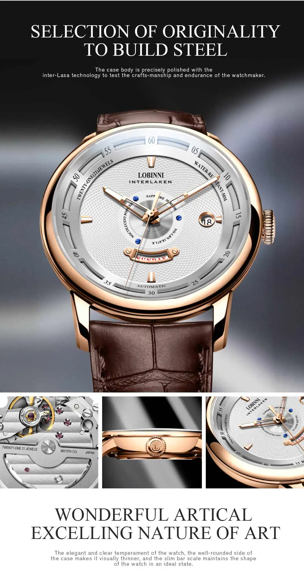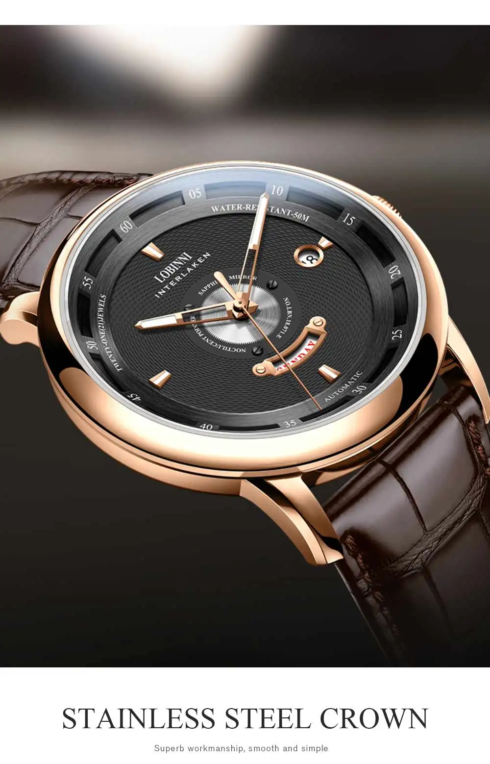 Switzerland Luxury Brand LOBINNI Japan MIYOTA Automatic Mechanical Men’s Watches Dual Calendar Sapphire Waterproof Clocks L18071