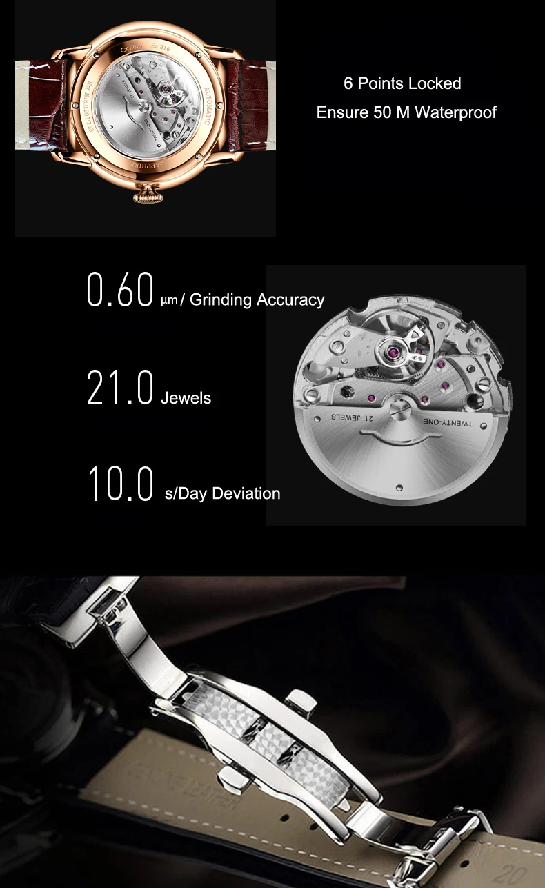 High price ratio 21 Jewels Automatic Mechanical Movement / Sapphire Window
